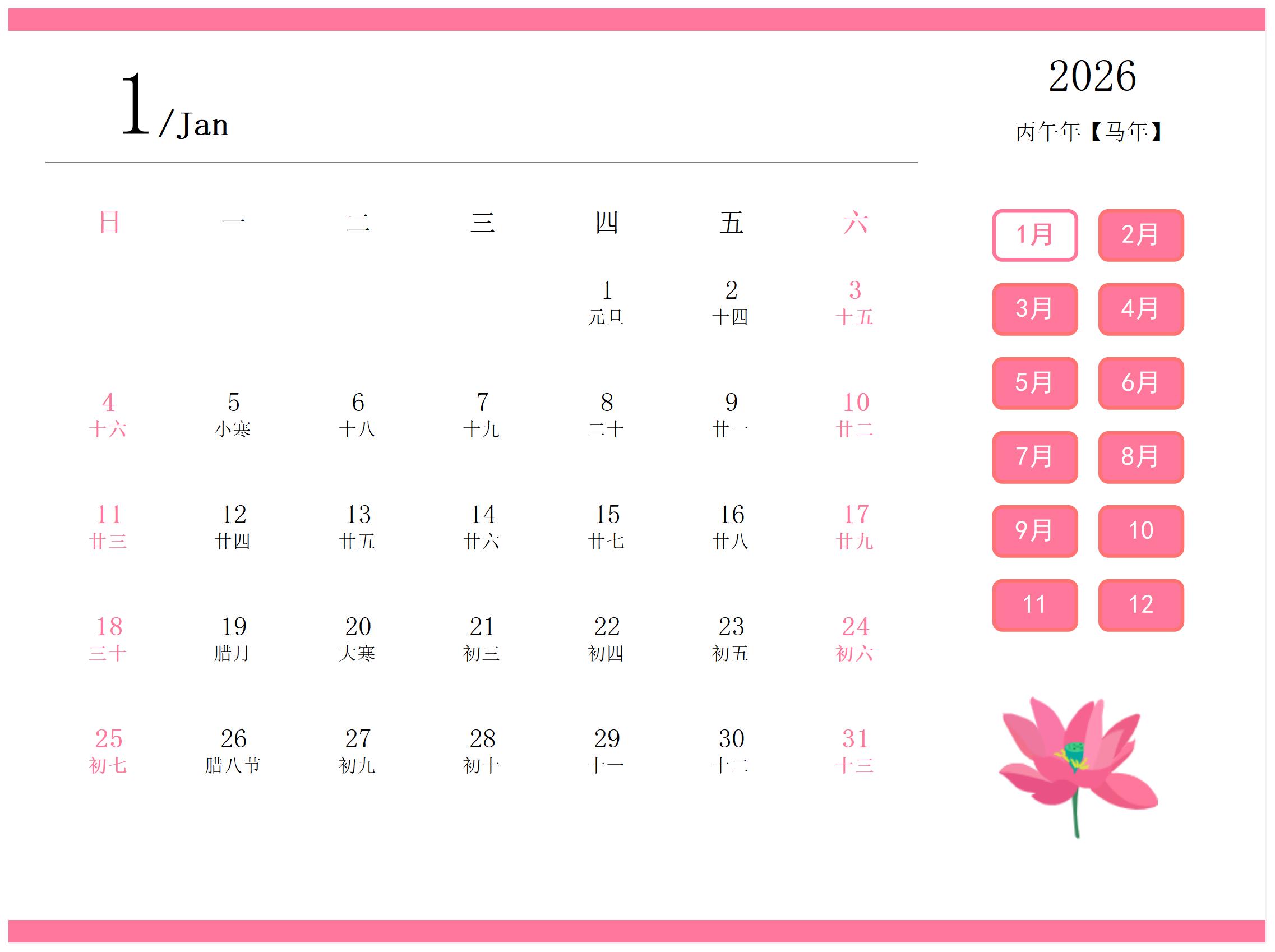 2026日历计划表