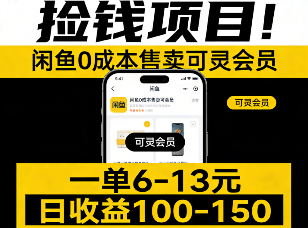 捡钱项目!在闲鱼0成本售卖可灵会员,一单6-13元,日收益100-150