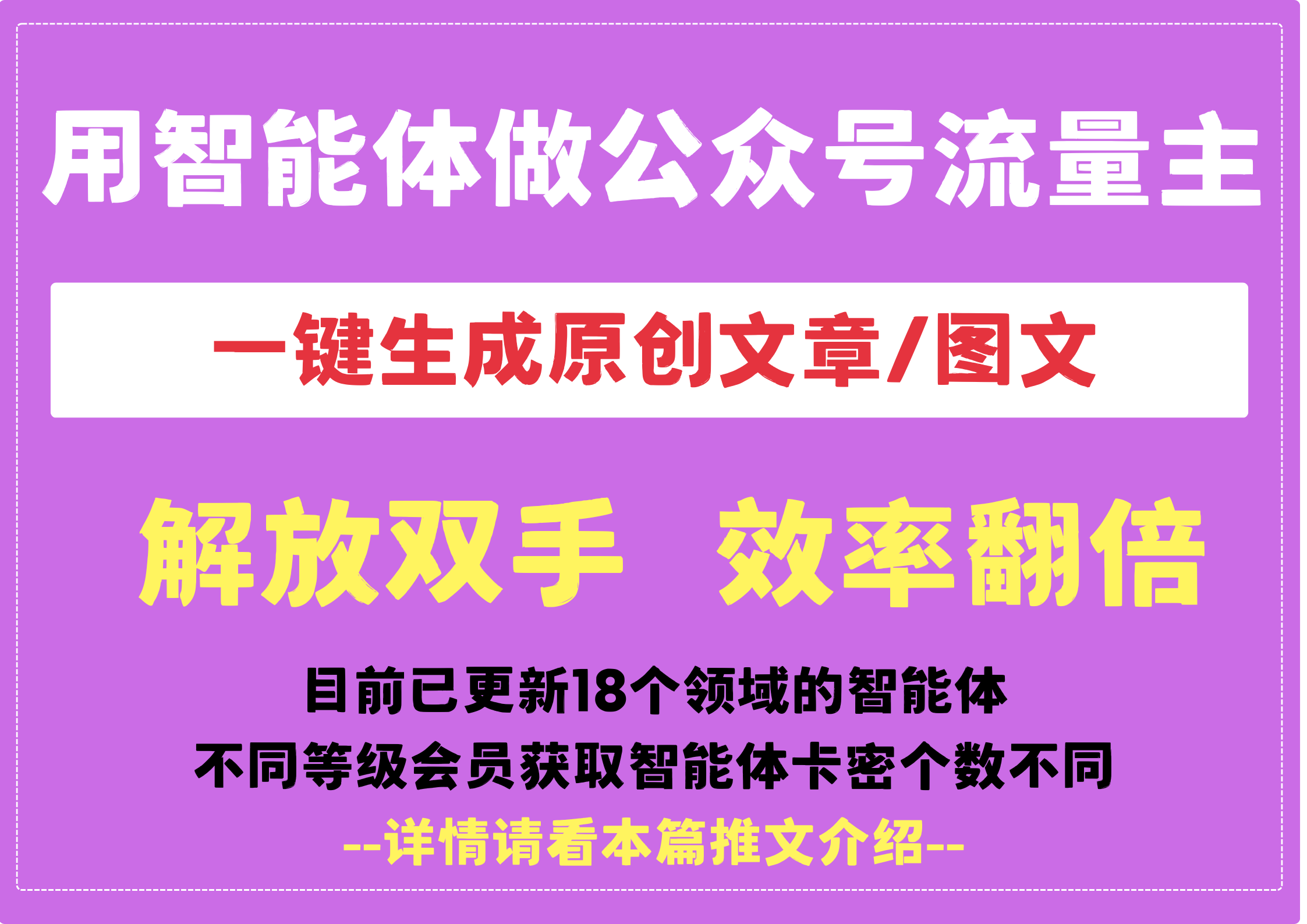 用智能体做公众号流量主项目,一键生成原创文章/图文